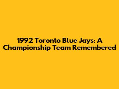 1992 Toronto Blue Jays: The Championship Roster And Their Legacy