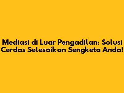 Hai, guys! Pernah nggak sih kalian ngalamin yang namanya sengketa? Entah itu sama tetangga soal batas tanah, sama rekan bisnis soal kesepakatan, atau bahkan sama anggota keluarga soal warisan. Rasanya pasti bikin pusing tujuh keliling, kan? Nah, kalau udah mentok, biasanya pikiran langsung tertuju ke pengadilan. Tapi, tau nggak sih, ada lho cara yang lebih cerdas, lebih hemat, dan pastinya lebih damai buat nyelesaiin masalah kalian, yaitu mediasi di luar pengadilan! Yup, proses mediasi di luar pengadilan ini adalah sebuah terobosan keren yang memungkinkan kalian menyelesaikan konflik tanpa harus bersitegang di ruang sidang yang formal dan seringkali bikin stres. Bayangin aja, kalian bisa ngobrol santai, dibantu sama pihak ketiga yang netral, buat nemuin solusi yang paling pas buat semua pihak. Keren banget, kan? Artikel ini bakal ngupas tuntas soal proses mediasi di luar pengadilan, mulai dari apa sih itu mediasi, kenapa penting banget kalian pilih jalur ini, sampai gimana sih langkah-langkahnya. Jadi, siap-siap ya, kita bakal menyelami dunia mediasi yang penuh solusi damai!