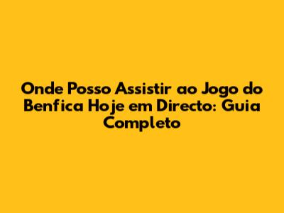 Assistir Benfica Ao Vivo Hoje: Guia Completo