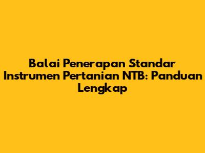 Balai Penerapan Standar Instrumen Pertanian NTB: Panduan Lengkap