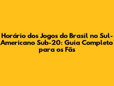 Acompanhar a Seleção Brasileira Sub-20 no Sul-Americano é uma experiência emocionante, e saber os horários dos jogos é fundamental para não perder nenhum lance. O calendário do torneio é divulgado com antecedência, e as datas e horários de cada partida são definidos pela organização do evento. É importante ficar atento às mudanças de horário, que podem ocorrer devido a fatores como a transmissão televisiva e os ajustes de fuso horário. Para facilitar a vida dos fãs, diversas fontes de informação fornecem atualizações em tempo real sobre os horários dos jogos, incluindo sites esportivos, aplicativos e redes sociais. Além disso, a Confederação Brasileira de Futebol (CBF) geralmente divulga o calendário oficial em seu site e em suas plataformas de comunicação. Ao planejar sua agenda, considere os horários dos jogos do Brasil no Sul-Americano e as opções de transmissão, como canais de televisão e plataformas de streaming. Prepare-se para torcer pela Seleção Brasileira, vibrar com cada gol e celebrar as vitórias dos nossos jovens talentos. Lembre-se de que os horários podem variar, então consulte as fontes oficiais para obter as informações mais precisas e atualizadas. Acompanhar a Seleção Sub-20 é uma oportunidade de celebrar o futuro do futebol brasileiro e de apoiar os jovens jogadores em sua jornada rumo ao sucesso.