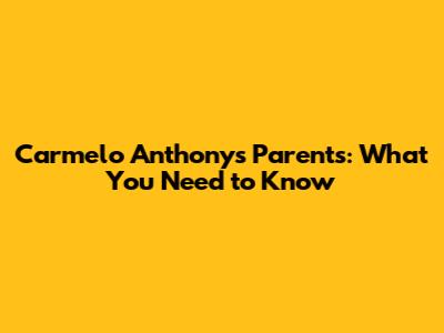 Carmelo Anthony's Parents: What You Need To Know