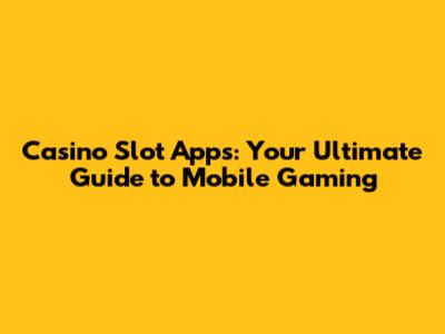 Casino Slot Apps: Your Ultimate Guide To Mobile Gaming