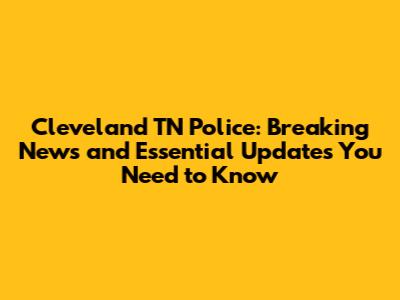 Cleveland TN Police: Breaking News and Essential Updates You Need to Know
