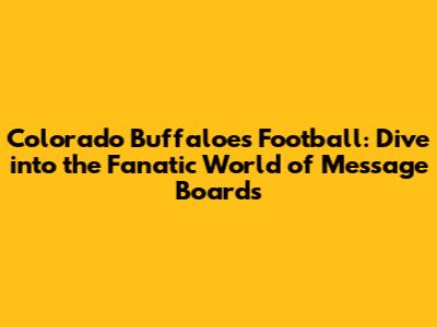 Top Colorado Buffaloes Football Message Boards and Forums