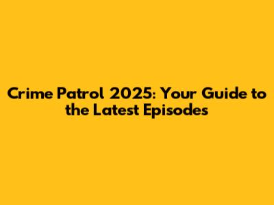 Crime Patrol 2025: Watch New Episodes & Stay Updated