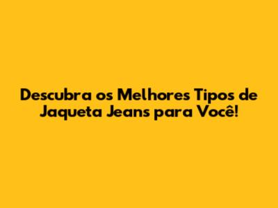 Descubra Os Melhores Tipos De Jaqueta Jeans Para Você!