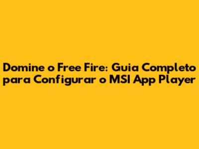 Domine O Free Fire: Guia Completo Para Configurar O MSI App Player