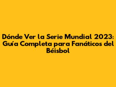 Dónde Ver La Serie Mundial 2023: Guía Completa
