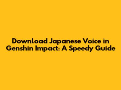 Download Japanese Voice In Genshin Impact: A Speedy Guide