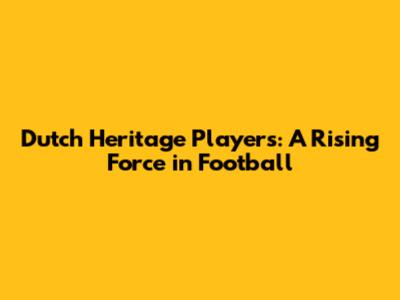 Dutch Heritage Players: A Rising Force In Football