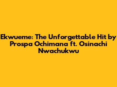 When we talk about Prospa Ochimana and Osinachi Nwachukwu's collaboration on "Ekwueme," we're talking about a match made in heaven, guys. Prospa Ochimana, known for his vibrant praise and worship style, brought his signature energy and heartfelt delivery. His passion is evident in every line, making the listener feel the joy and confidence he has in God's promises. Then you have the late, great Osinachi Nwachukwu. Her voice was pure, powerful, and carried a deep anointing that could bring anyone to tears or uplift them in moments. Her presence on "Ekwueme" is nothing short of miraculous. She adds a layer of profound reverence and soul-stirring depth that perfectly complements Prospa's energetic praise. The synergy between them is palpable; you can hear how their voices dance together, creating a powerful spiritual atmosphere. It’s this blend of styles – Prospa’s dynamic praise and Osinachi’s deeply soulful worship – that makes "Ekwueme" so uniquely captivating. It appeals to a broad audience, drawing people into worship through different avenues. The song truly embodies the essence of African gospel music, where powerful vocals, relatable lyrics, and deep spiritual conviction come together to create an unforgettable experience. The impact of Osinachi Nwachukwu's contribution cannot be overstated. Her voice became synonymous with powerful gospel anthems, and "Ekwueme" is a shining example of her talent and her spirit. Even after her passing, her voice continues to minister, offering hope and encouragement. This song stands as a beautiful memorial to her enduring legacy. Prospa Ochimana's leadership in bringing this song to life is also commendable. He envisioned a song that would clearly articulate God's power and faithfulness, and he executed it flawlessly, choosing the perfect partner in Osinachi to realize that vision. The result is a song that has become an anthem for many, a constant reminder of the God who fulfills His word. The choice of Igbo, a major Nigerian language, also adds to the song's cultural richness and its ability to connect with a vast audience, particularly within the African diaspora and beyond. The lyrical content is structured to build momentum, starting with declarations and moving towards fervent praise, mirroring the journey of faith from confession to celebration. This dynamic flow makes the song engaging and keeps the listener invested from beginning to end. The interplay between the lead vocals and backing harmonies further enhances the song's impact, creating a full and immersive worship experience. It's the kind of song that you can feel in your spirit, moving you to dance, to cry, or simply to stand in awe of God's greatness. The emotional resonance is undeniable, making it a go-to track for moments of deep personal connection with the divine. This collaboration wasn't just about recording a song; it was about creating a spiritual legacy that continues to inspire and uplift.