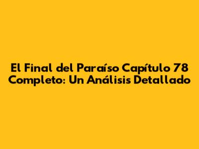 En resumen, el capítulo 78 es una pieza fundamental en la narrativa de "El Final del Paraíso", que no solo entretiene sino que también invita a la reflexión y mantiene a los espectadores al borde de sus asientos. ¡No se lo pierdan!