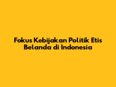 Fokus Kebijakan Politik Etis Belanda Di Indonesia
