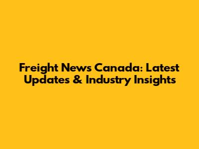 Freight News Canada: Latest Updates & Industry Insights