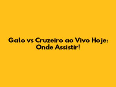 Galo Vs Cruzeiro Ao Vivo Hoje: Onde Assistir!