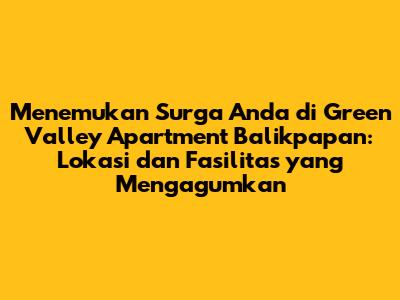 Guys, lagi cari tempat tinggal idaman di Balikpapan yang keren abis dan strategis? Nah, Green Valley Apartment Balikpapan ini bisa jadi jawaban kalian! Apartemen ini bukan cuma sekadar bangunan, tapi sebuah komunitas yang menawarkan gaya hidup modern dengan fasilitas yang bikin iri tetangga sebelah. Lokasinya yang prima di Balikpapan membuatnya jadi pilihan yang super duper menarik buat kamu yang aktif dan dinamis. Di sini, kita akan kupas tuntas semua tentang alamat Green Valley Apartment Balikpapan dan fasilitas apa aja sih yang bikin dia beda dari yang lain. Siap-siap terpesona ya!