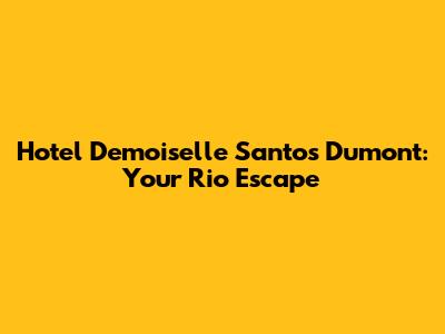 Hey everyone! So, you're looking for a place to stay in Rio de Janeiro, right? And you've stumbled upon Hotel Demoiselle Santos Dumont. Let me tell you, you've hit the jackpot! This isn't just any hotel; it's an experience, a gateway to the vibrant heart of Rio. Nestled in a prime location, the Hotel Demoiselle Santos Dumont offers an unparalleled blend of comfort, style, and convenience that will make your trip unforgettable. Imagine waking up to the gentle sounds of the city, stepping out onto your balcony to catch a glimpse of the iconic Sugarloaf Mountain, and knowing that the best of Rio is just a stone's throw away. That's the magic this place offers, guys.