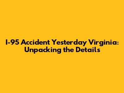 Hey everyone, let's dive into what happened with the I-95 accident yesterday in Virginia. When it comes to I-95 accidents in Virginia, it's crucial to stay informed, especially if you're a regular traveler on this major artery. Understanding the specifics – the location, the vehicles involved, and any resulting traffic delays – can help you plan your routes better and stay safe. So, what exactly went down, and what should you know? Well, let's break it down, covering everything from the immediate aftermath to the lasting impact on commuters.