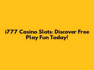I777 Casino Slots: Discover Free Play Fun Today!