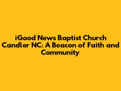 Hey there, folks! Are you looking for a church home in the heart of Candler, North Carolina? Well, look no further! Let's dive into the iGood News Baptist Church and see what makes it such a special place. We'll explore its history, its community outreach, and what makes it a welcoming spot for anyone seeking spiritual growth and fellowship. Get ready to learn all about this awesome church!