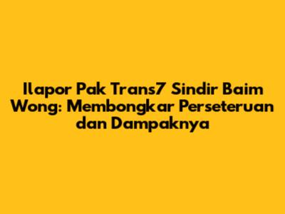 Ilapor Pak Trans7 telah menjadi topik hangat di kalangan netizen, khususnya setelah acara tersebut menampilkan sindiran terhadap Baim Wong. Kejadian ini memicu gelombang diskusi dan perdebatan di media sosial, dengan berbagai sudut pandang yang muncul. Mari kita telaah lebih dalam mengenai perseteruan ini, termasuk apa yang sebenarnya terjadi, reaksi publik, dan dampaknya terhadap kedua belah pihak.