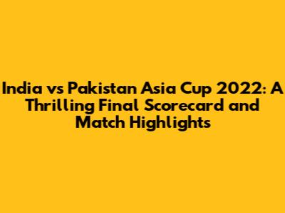 India Vs Pakistan Asia Cup 2022: Final Scorecard & Highlights