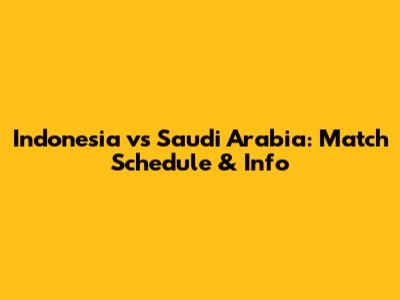Indonesia Vs Saudi Arabia: Match Schedule & Info