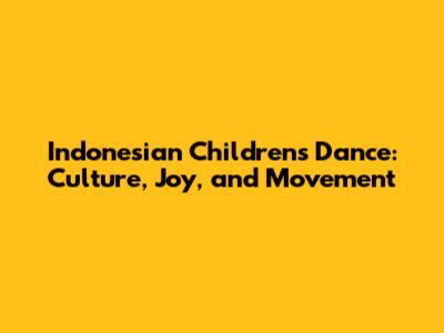 Indonesian Children's Dance: Culture, Joy, And Movement