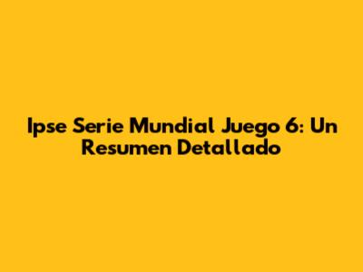Ipse Serie Mundial Juego 6: Resumen Y Momentos Clave