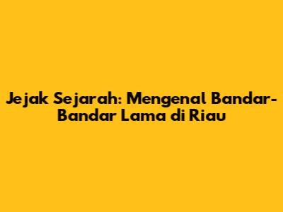 Jejak Sejarah: Mengenal Bandar-Bandar Lama Di Riau