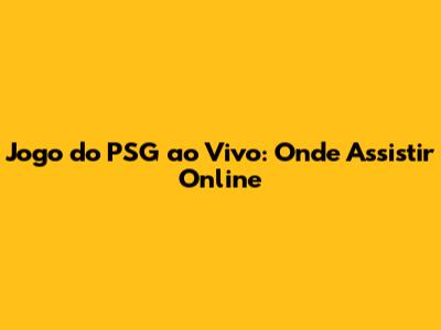 Jogo Do PSG Ao Vivo: Onde Assistir Online