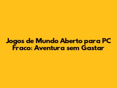 Jogos De Mundo Aberto Para PC Fraco: Aventura Sem Gastar