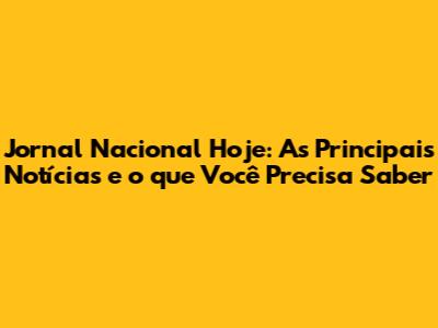 Jornal Nacional Hoje: Últimas Notícias E Destaques