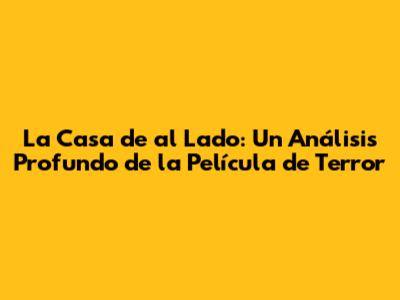 La Casa De Al Lado: Un Análisis Profundo De La Película De Terror