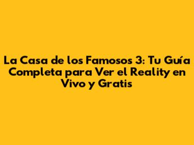 ¡Hola, fanáticos de los reality shows! ¿Están listos para sumergirse en el drama, las risas y las emociones de La Casa de los Famosos 3? Si la respuesta es un rotundo sí, entonces han llegado al lugar correcto. Aquí, les daré una guía completa sobre cómo disfrutar de este fenómeno televisivo, desde cómo verlo en vivo y gratis hasta los secretos para mantenerse al día con todos los chismes y momentos épicos. Prepárense para una temporada llena de sorpresas, porque en La Casa de los Famosos todo puede pasar. ¡Vamos a ello!