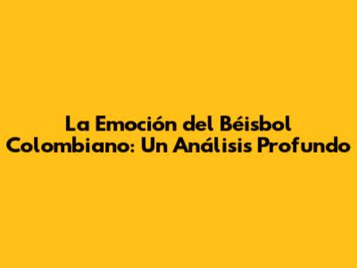 La Emoción Del Béisbol Colombiano: Un Análisis Profundo