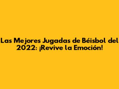 Las Mejores Jugadas De Béisbol Del 2022: ¡Revive La Emoción!