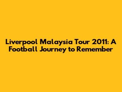 Liverpool's 2011 Tour: A Malaysian Football Journey
