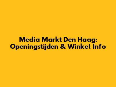 Media Markt Den Haag: Openingstijden – De Basics