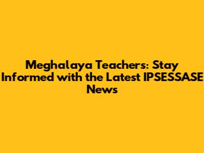 Meghalaya Teachers: IPSESSASE News & Updates