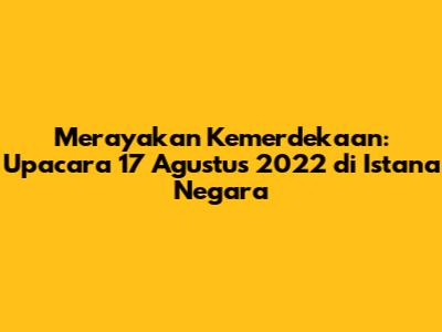 Upacara 17 Agustus 2022 di Istana Negara adalah perayaan yang sangat penting bagi bangsa Indonesia. Dari persiapan yang matang hingga pelaksanaan yang khidmat, upacara ini mengandung makna yang mendalam tentang sejarah, semangat nasionalisme, dan harapan untuk masa depan. Mari kita terus menghargai kemerdekaan, menjaga persatuan dan kesatuan bangsa, serta berkontribusi positif bagi kemajuan Indonesia. Dengan semangat juang para pahlawan dan dukungan dari seluruh rakyat, kita yakin Indonesia akan menjadi negara yang semakin maju dan sejahtera.