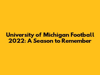 Michigan Football 2022: A Season To Remember