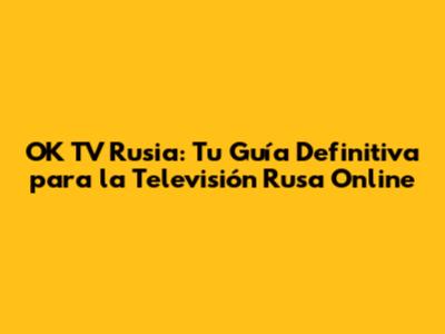 OK TV Rusia: Tu Guía Completa Para La TV Rusa Online
