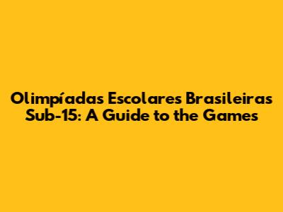 Olimpíadas Escolares Brasileiras Sub-15: A Guide To The Games
