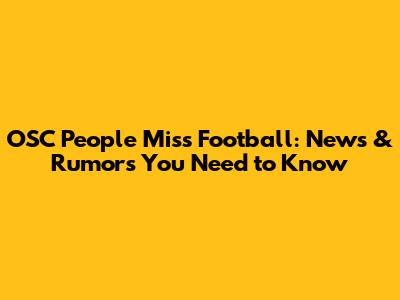OSC People Miss Football: News & Rumors You Need