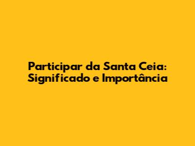 A Santa Ceia, também conhecida como a Ceia do Senhor ou Eucaristia, é uma das ordenanças mais sagradas e significativas do cristianismo. Mas, o que significa participar da Santa Ceia, afinal? Para muitos cristãos, participar da Santa Ceia é um ato de profunda comunhão com Deus e com a comunidade de fé. É uma celebração que rememora o sacrifício de Jesus Cristo na cruz e simboliza a esperança na vida eterna. Neste artigo, vamos explorar em detalhes o significado, a importância e a prática da Santa Ceia, para que você possa compreender melhor esse sacramento essencial.