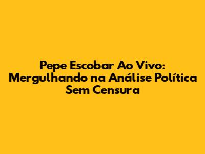 Pepe Escobar Ao Vivo: Análise Profunda E Sem Filtros
