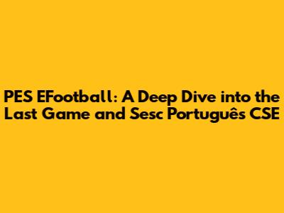 Hey guys, let's dive into something cool: PES eFootball, but specifically, focusing on the last game and its connection to Sesc Português CSE. This is gonna be a fun ride, trust me! So, what's the deal with PES eFootball, and why are we talking about the last game? Well, for those of you who might not know, PES (Pro Evolution Soccer) was a legendary football simulation game that has gone through some major transformations. While it's now known as eFootball, the legacy of the older PES games still lingers, especially when we talk about specific teams, players, and game dynamics. And, get this, Sesc Português CSE plays a key role in the whole discussion.
