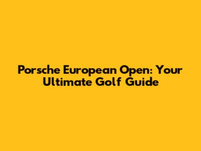 Porsche European Open: Your Ultimate Golf Guide